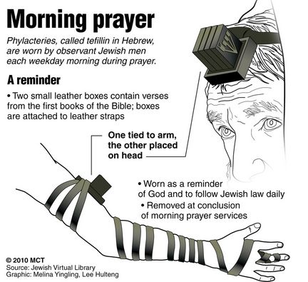 - “All their deeds are done for men to see. They broaden their phylacteries and lengthen their tassels.” (Deuteronomy 22:12 “You shall make yourself fringes upon the four quarters of your garment, wherewith you cover yourself.)